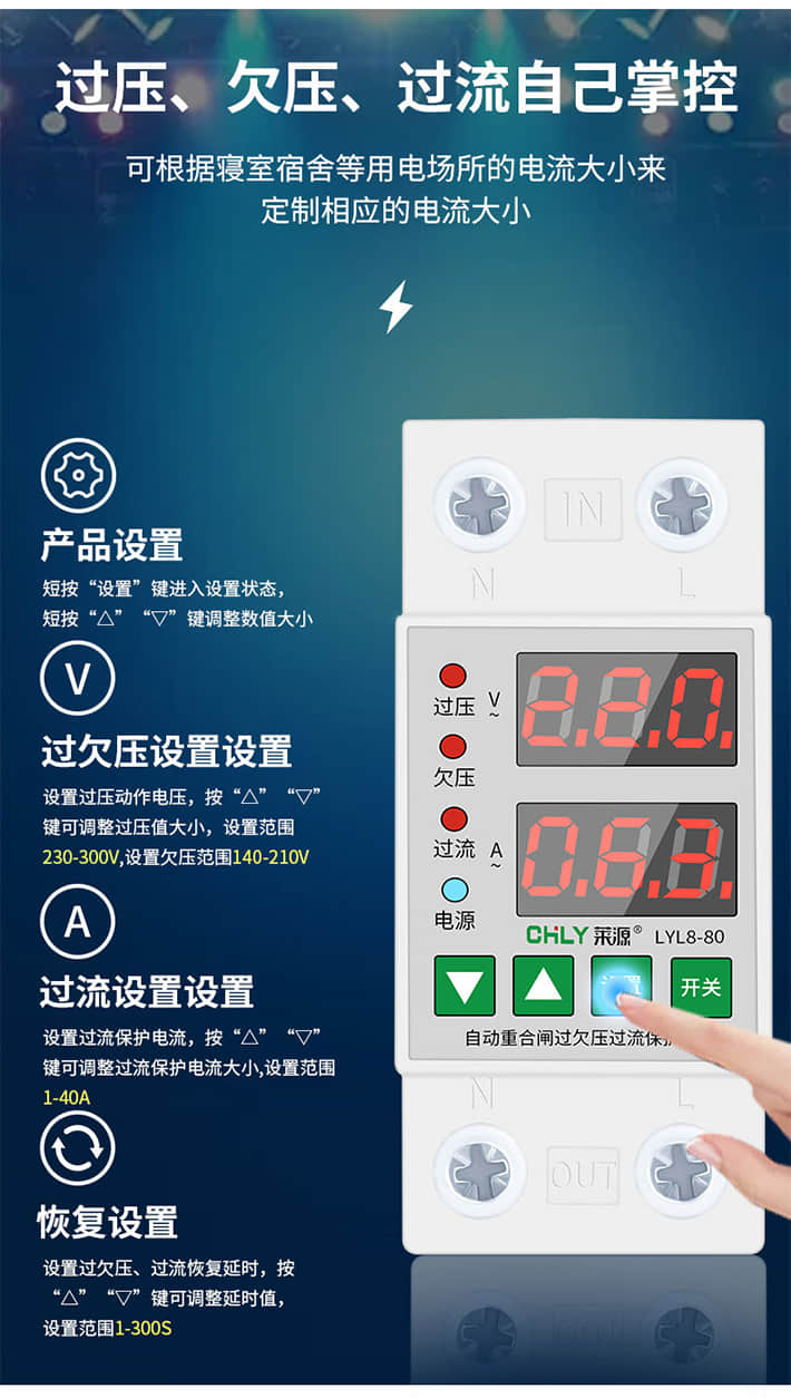 相關標簽: LYL8-80自動重合閘過欠壓過流保護器